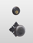 中世ドイツの教会の扉、北イタリアの古い灯火台などヨーロッパにはハンドメイドの風格を備えた伝統的な鉄細工がいくつも存在しています。[フェロネリ]シリーズは、ヨーロッパの鉄細工が持つ手作りの風合いを生かし、個性的で落ち着いた質感を再現するとともに、雨量が多く、湿度の高い日本の風土にあわせて黄銅を素材とし、表面処理に依り鍛鉄風の仕上げをしているため、鉄と違い、不快な赤錆が浮く心配がありません。