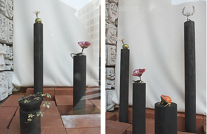 | ショーウィンドウの展示作品について 正面玄関左側のショーウィンドウに水代 達史さん、赤レンガ通り側のショーウィンドウに安原成美さんの作品を展示しております。 展示期間:2014年4月1日~5月31日 |