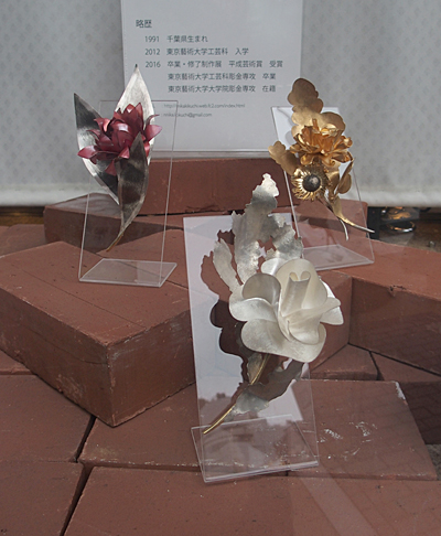 ■菊池美夏 ![]() 作品名:husband to me, please! 素材: シルバー 真鍮 銅 中世のヨーロッパ、男性は野花を摘みブーケとともに女性にプロポーズをしました。女性は承諾の意味を込めてそのブーケから一輪を取り出し、男性の胸元に。これがブーケとブートニアの由来と成りました。 そんな初心の心が忘れることないように、一生枯れることのないブーケとブートニアを作りました。 今回ブートニアを展示します。 菊池 美夏 (きくち みか) http://mikakikuchi.web.fc2.com/index.html 1991年 千葉県生まれ 2012年 東京藝術大学工芸科 入学 2016年 卒業・修了制作展 平成芸術賞 受賞 東京藝術大学工芸科彫金専攻 卒業 東京藝術大学大学院彫金専攻 在籍 |