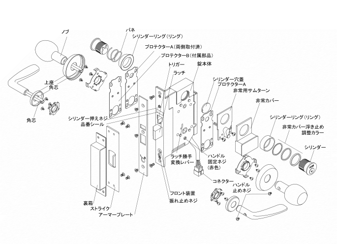 アーマープレート面からノブまたはレバーハンドルの回転中心、或いはシリンダーの外筒中心までの長さ。